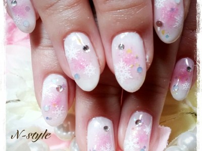雪の結晶&チークネイルの素敵な組み合わせです