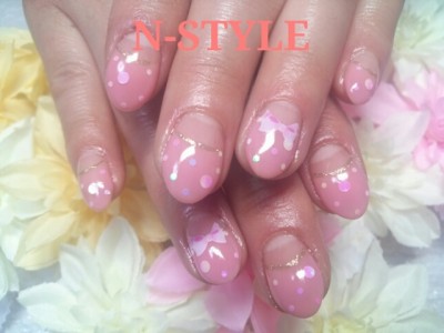 リボン&ホロジェルネイル|成田のネイルサロンN-style(エヌスタイル)でゆっくりネイルをお楽しみください
