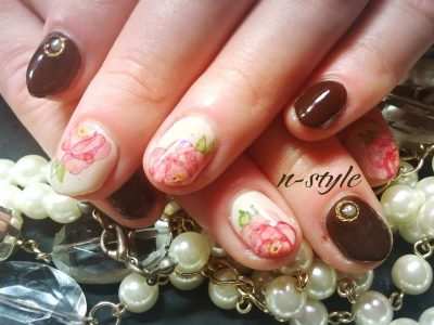 大人フラワーネイル|成田のネイルサロンN-style(エヌスタイル)でゆっくりネイルをお楽しみください