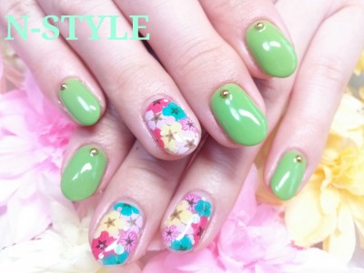 押し花アートジェルネイル|成田のネイルサロンN-style(エヌスタイル)でゆっくりネイルをお楽しみください
